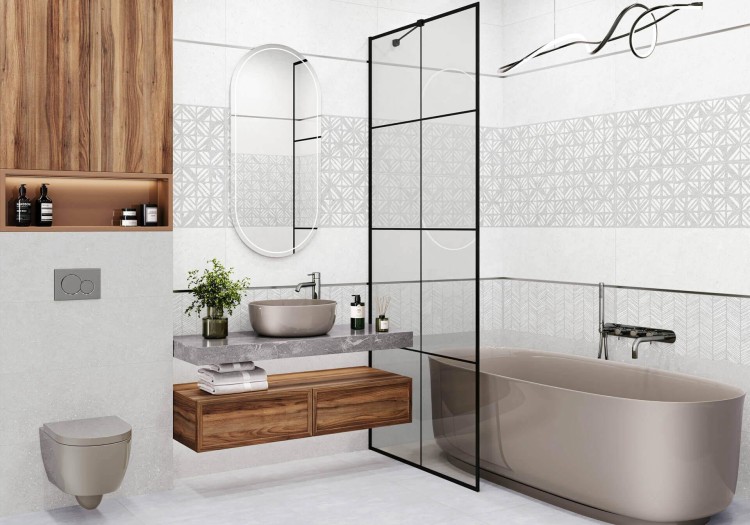 Керамогранит доступен в форматах 30х90, 20х90, 60х60, бордюр - в формате 1.2х90.