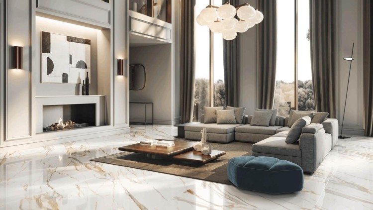 9 цветов плитки под мрамор: Статуарио Уайт, Калакатта Голд, Каррара Айвори, Кристал Пьюр, Элегант Сильвер, Тусканиа Грэй, Абсолют Блэк, Довер Лайт, Мадагаскар Дарк дополнены стильными декорами.