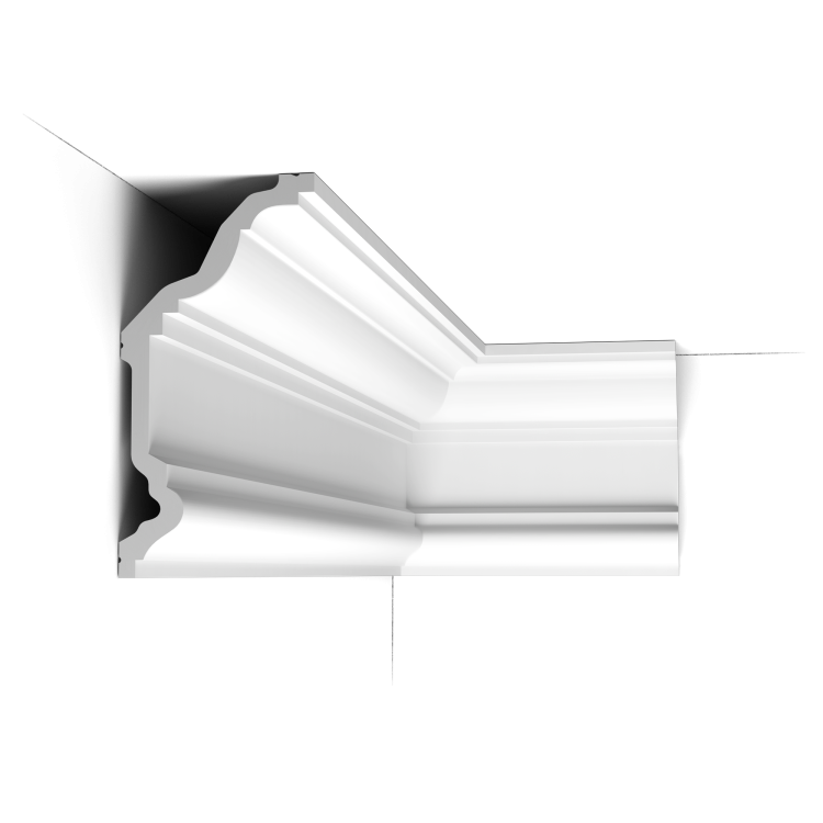 Высота и ширина карнизов от Orac меняются по модификациям, длина отрезков профиля постоянна — 200 см. Большинство моделей по тыльной стороне оснащены кабель-каналами для скрытия проводки, некоторые допускают размещение встроенного освещения. Все изделия готовы к монтажу — загрунтованы в белый цвет. Поверхность с высокой адгезией к красителям по желанию тонируется в любую гамму. Для этого рекомендуется купить акриловые или водные составы.